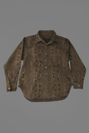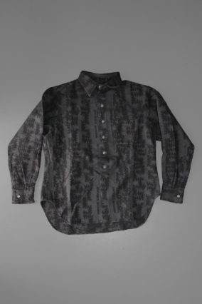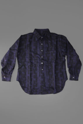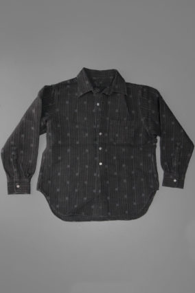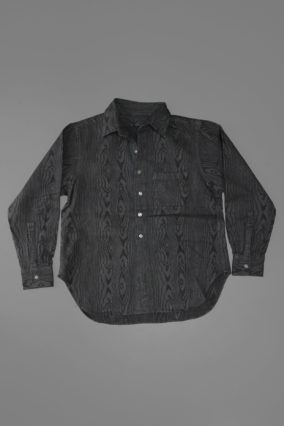 A generously cut overcoat, tailored in Japan from jacquard fabrics woven in England to weaving patterns from the mid-20th Century.
