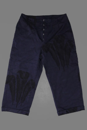Wide tapered trousers, tailored in Japan from jacquard fabrics woven in England to weaving patterns from the mid-20th Century.
