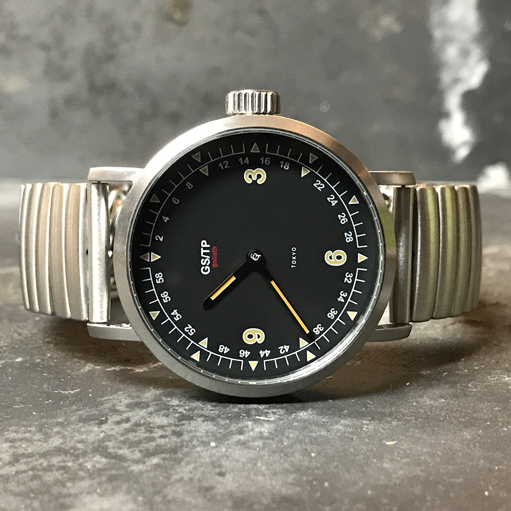 GS/TP’s Goliath Navigator design is inspired by the large multi-register aeroplane navigator watches of the 1950s. It has a full 60-minutes track with inner and outer markers at 5-mintute intervals. The centre of the dial is kept clear for improved legibility of the hands, and there are Explorer-style hour markers at 3, 6, and 9.