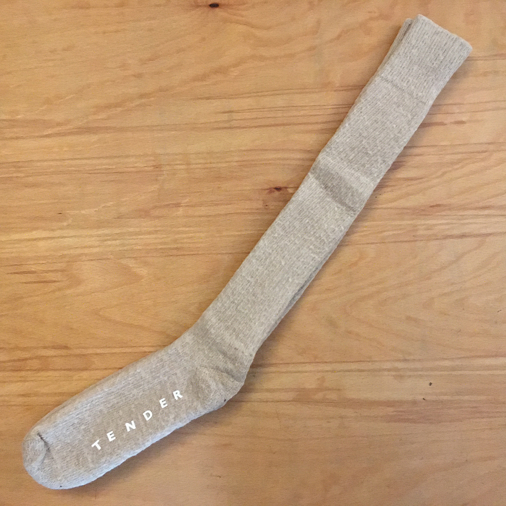Tender’s rib alpaca socks are knitted and hand linked in England from raw unbleached alpaca yarn, with nylon for durability. They are hand dyed with natural dyes, or left in their ‘unborn’ natural state, as they come off the knitting machine, and will shrink to fit with the first wash.