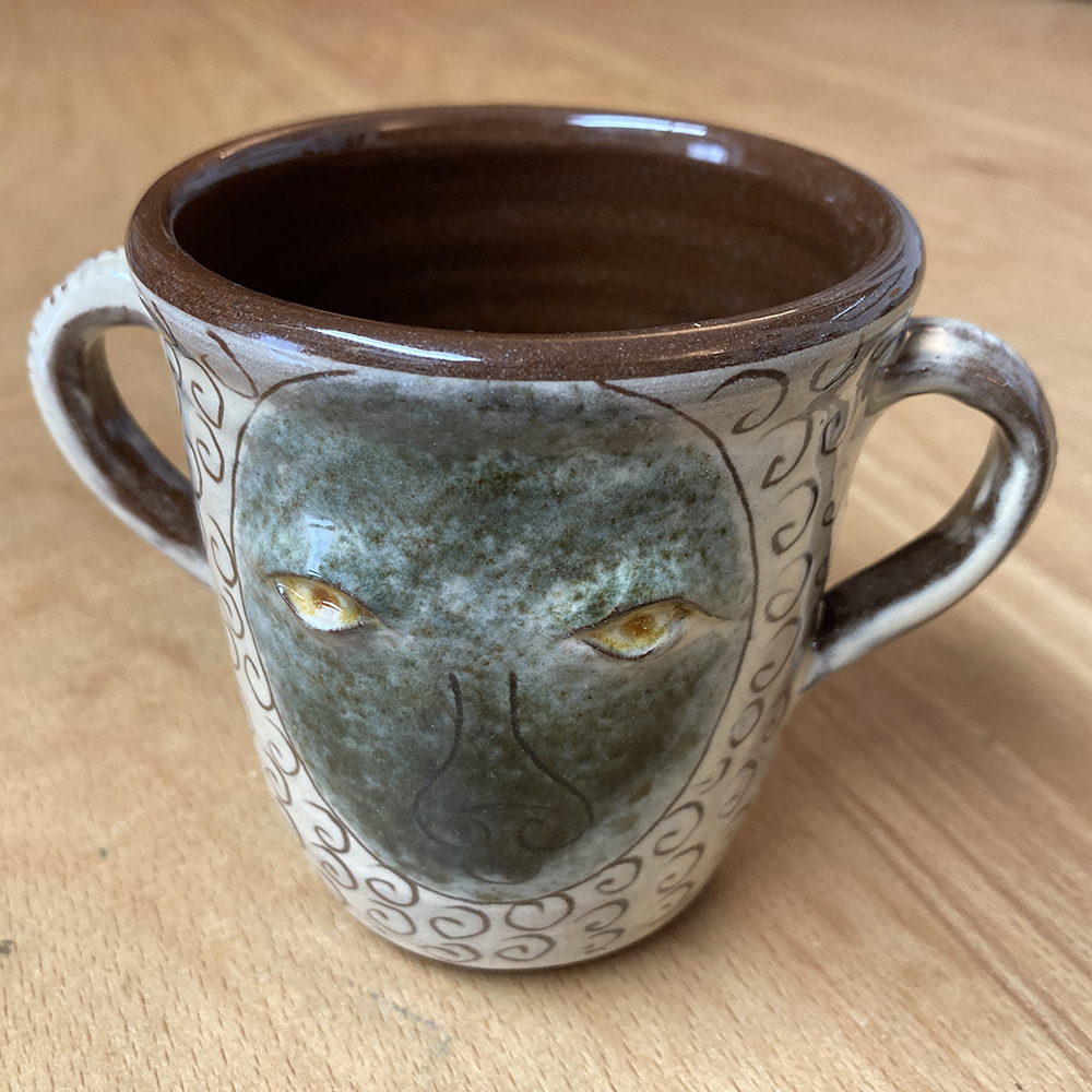 Sgraffito mugs are hand-incised before being glazed, picking out the scratches through the slip to the darker red clay as black. This ancient technique was used by the Romans to create frescos. Each piece is engraved entirely by hand, using just a pointed wooden stylus, so is slightly different from the next.