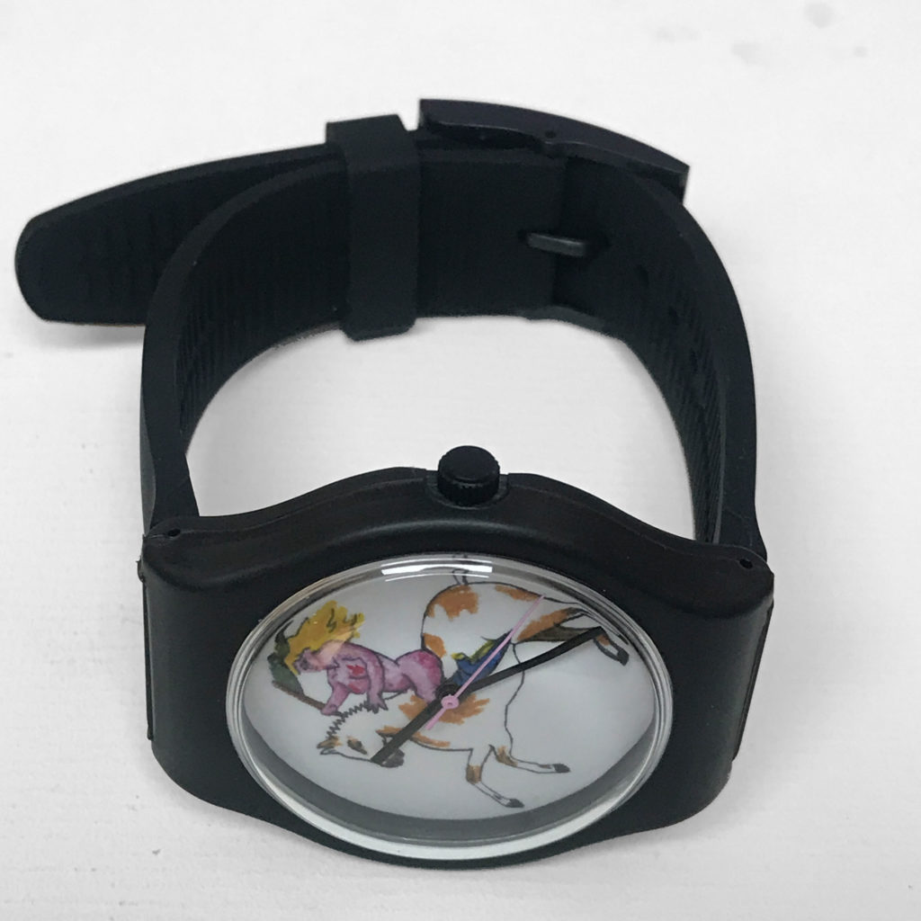 This set of dials is printed from original drawings by British artist Taylor Silk. Taylor’s main artistic practice is currently focused around rug making; the tactile aspect of rug making turns images into objects that are intended to be touched and interacted with. The work explores Taylor’s own sexuality and she uses her image making to express a counter opinion to a heavily conservative schooling environment where she was constantly in trouble for expressing interest in queer and alternative cultures and literature.