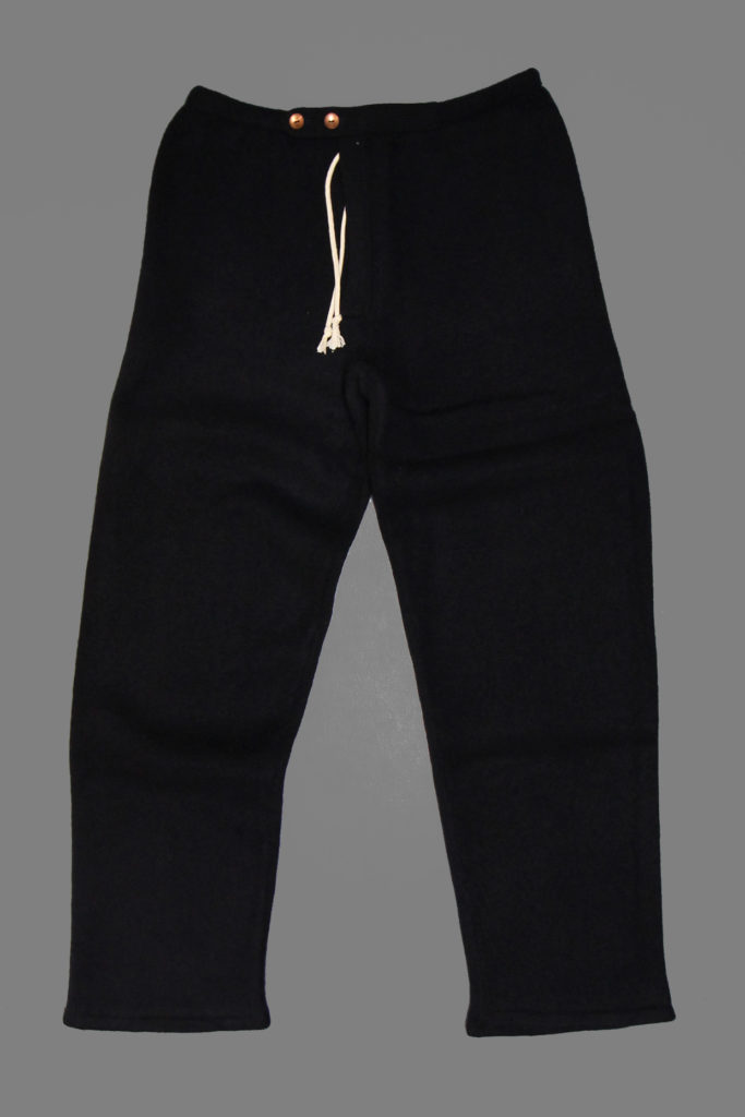 Knitted Pyjama Trousers are based on the long-running woven pyjama trousers, with no side seams, a single back pocket, cross-over fly and drawstring. The size label sewn onto the back of the waistband stops the draw cord from pulling through.