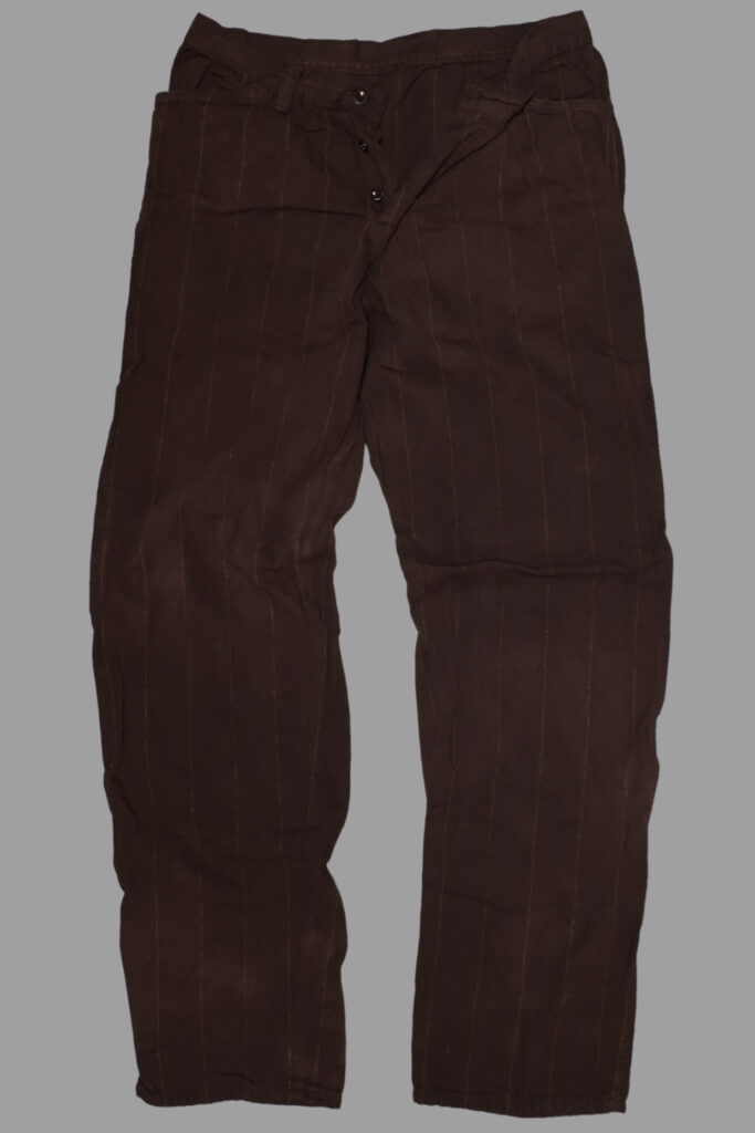 Based on the 132 jeans pattern, 122 jeans do not have back pockets or a back yoke- the seat is shaped by two ‘English’ pleats, facing towards the middle.