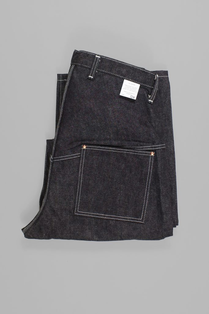 Adapted from type 156 Split Back jeans, Wader jeans have a very high waist, a generous seat, and an easy, wide leg. While they can be worn high up above the waist with a belt, Waders also wear very comfortably dropped down to the natural waist, with a low crotch.