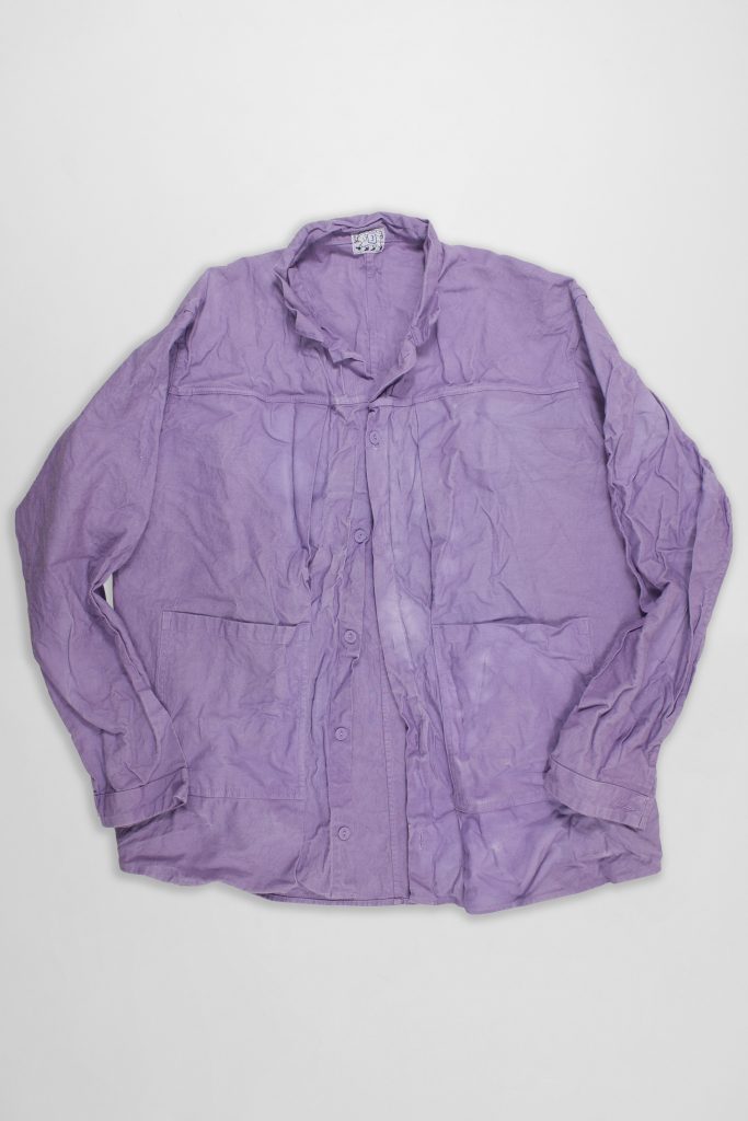 The shirt is sewn with all-cotton thread and finished with dyed cotton-covered metal buttons and a Made in USA blue label.