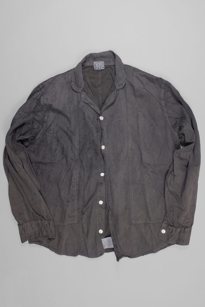 The Stole Pocket Butterfly shirt has long panel pockets sewn to the fronts and caught into the shoulder seam, recalling the embroidered liturgical vestments worn by Christian priests and bishops. The pockets are accessed from openings at the side, wearing as hand warmers.