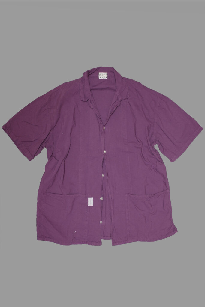 The Short Sleeve Wide Face Shirt is cut with extra wide front facings, sewn down halfway across the front panels.