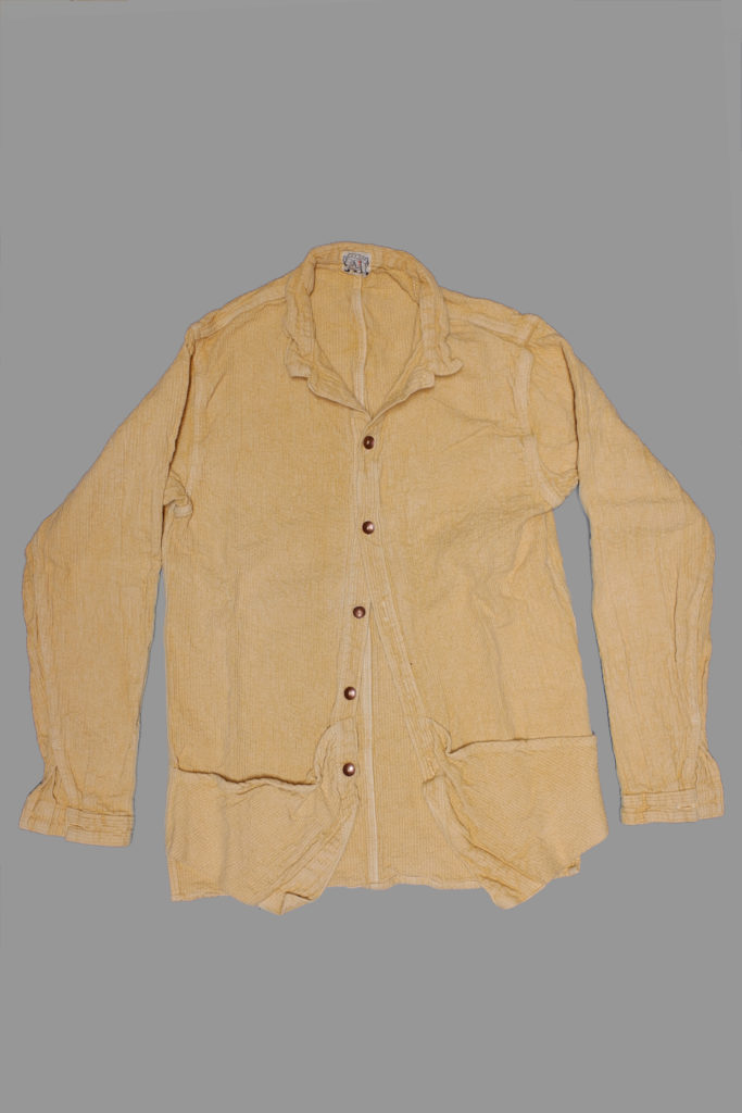 The Baste Pocket Shirt is named after a tailor’s baste- the first rough fitting for a bespoke garment. To allow for maximum alterations for custom clothes, wide inlays are left on the panels at first, and these are folded in and loosely sewn with baste stitches, using a soft easily-broken thread called ‘baste’. After a fitting these inlays are cut away and the garment is eventually finished. The shirt is cut with long straight front panels, which are folded up to form a pocket, and back at the fronts to form a cut-away, like the basted front of a bespoke waistcoat.