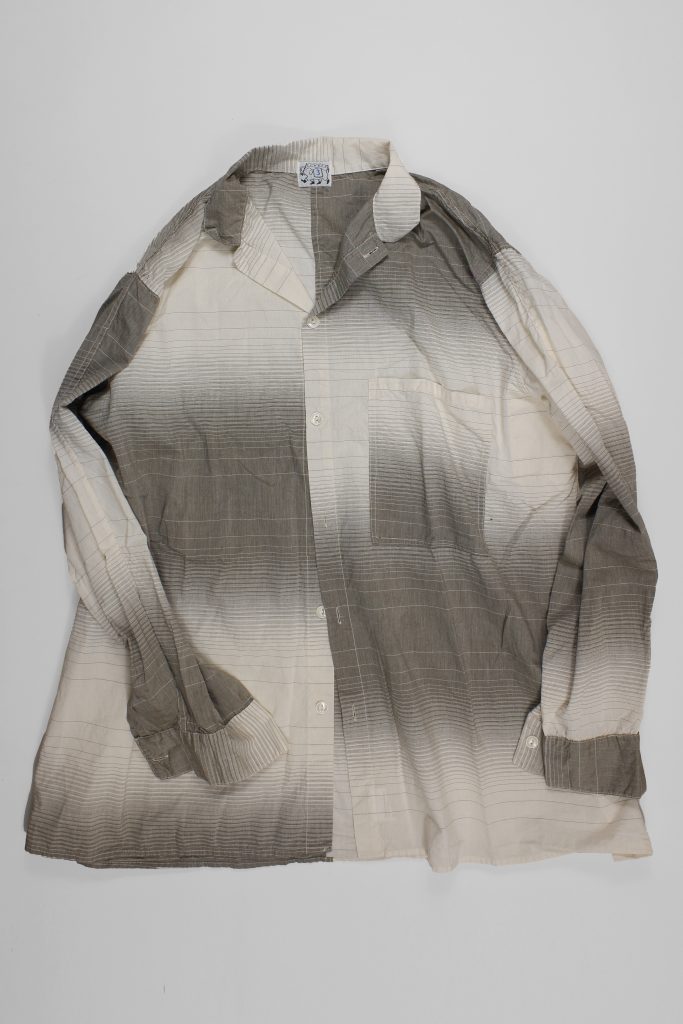 The pleats add volume into the skirt of the garment, which is cut without side seams, so that the tails hang freely without weight or stiffness. A single chest pocket on the left and full tailored cuff plackets behind the wrist refer to more traditional shirt making.