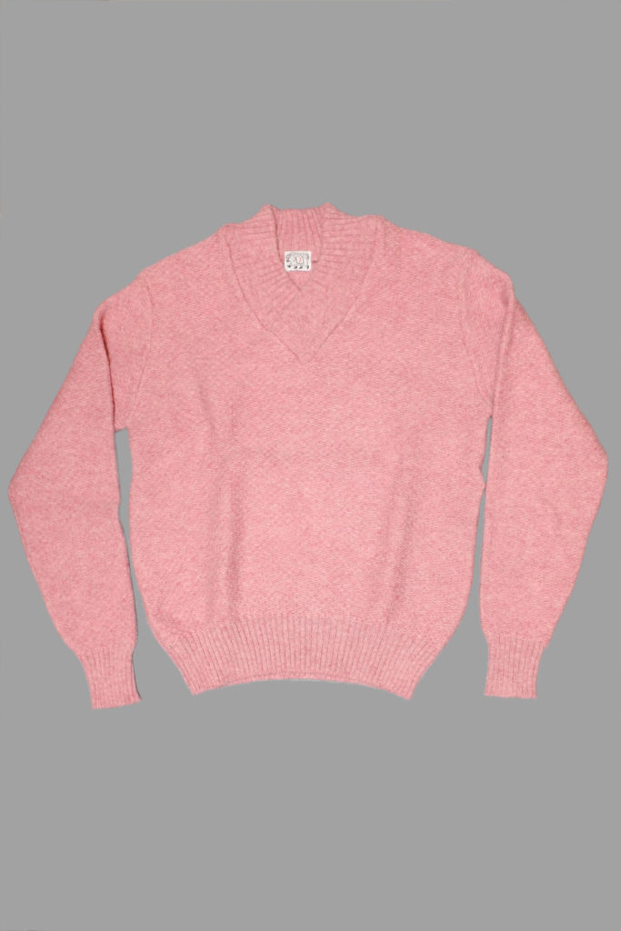 The Wide Rib Shawl Collar Pullover is knit from a traditional Shetland yarn, using a blind (one colour) Fair Isle stitch, reversed so that the floats show on the outside, with a smooth texture inside the garment.