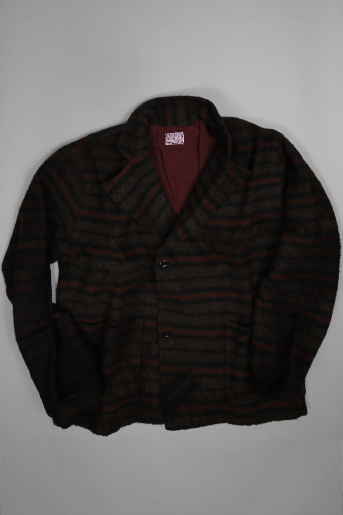 The Double Breasted Common Coat is a wider-wrap version of the Type 916 Common Coat. The front is fastened with a full set of sewn melamine tailor’s strap buttons, but it does not have show buttons: the stitching of the anchor buttons is visible on the outside. Rather than aping a fully tailored garment, the manufacture remains true to the idea of understandable construction, with a single side seam joining the body and sleeve, like a shirt or work jacket.