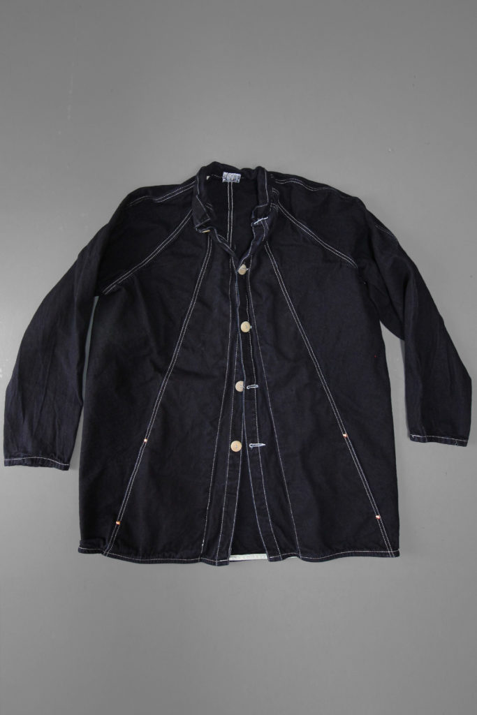 The Zoetrope Coat is cut from just five pieces of cloth- the front of each body panel is folded at an angle into a zigzag pleat radiating from the neck, which is stitched down with an opening to be used as a pocket. The inverted raglan sleeve construction provides ease of movement, and the dropped pockets and darted shoulders give this coat a gentle formality.