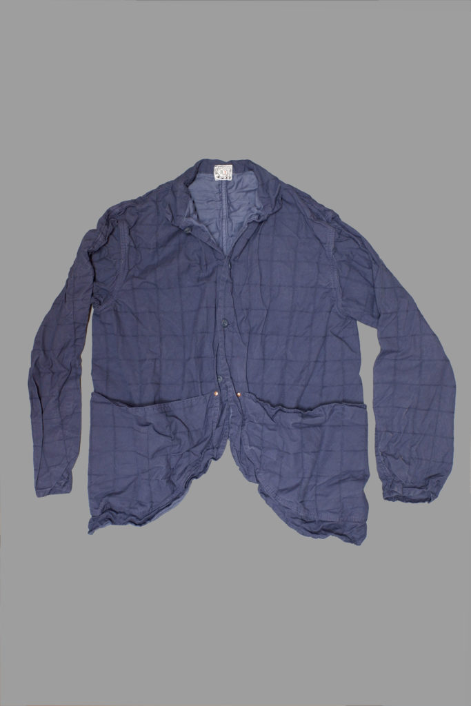 The Turvy Compass Pocket Jacket is based on the Compass Pocket Shirt, spun around by 90° so that the tails join at the front and back of the jacket, and the large curved pockets sit all the way across each side of the body.