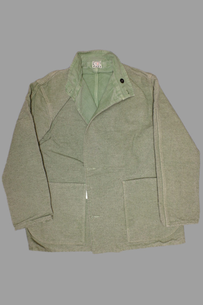 The body and collar are fully lined with cotton casement, and the neck is cut as a funnel, without a notch. Large side pockets are cut straight at the front and curved at the back, following the line of the hem.