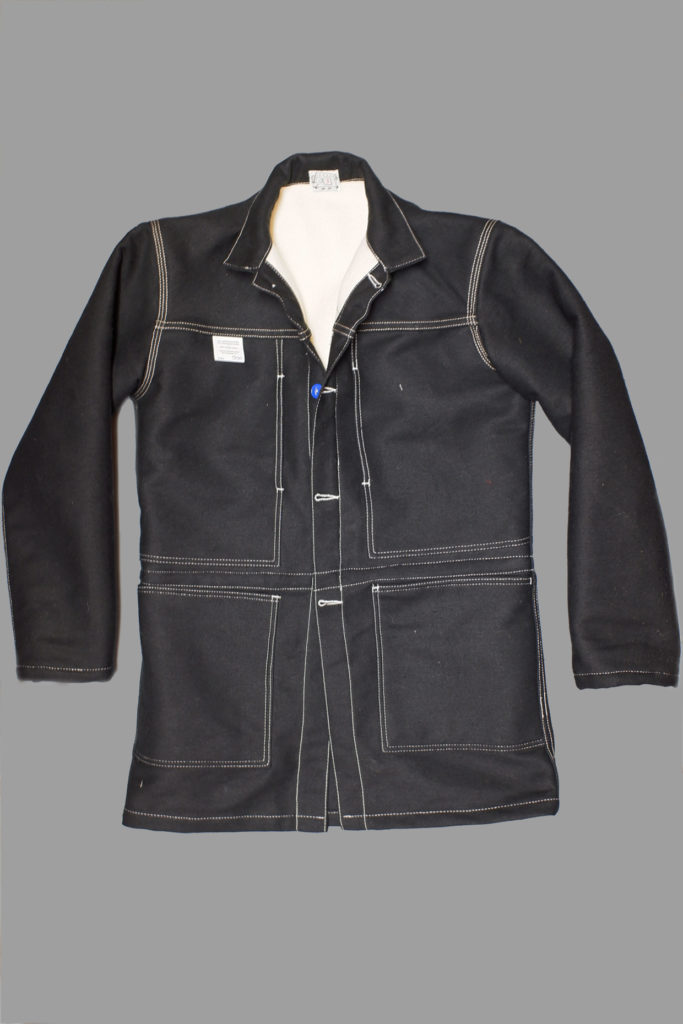 The Waist-Lined Redingote was first produced in 2011 and is an adaptation of the Type 900 denim jacket. The shoulders are cut on the bias, without a seam, and large symmetrical chest pockets are fitted into the front yoke seam. Where the 900 jacket finishes at the waist, this coat is cut longer, to mid thigh.