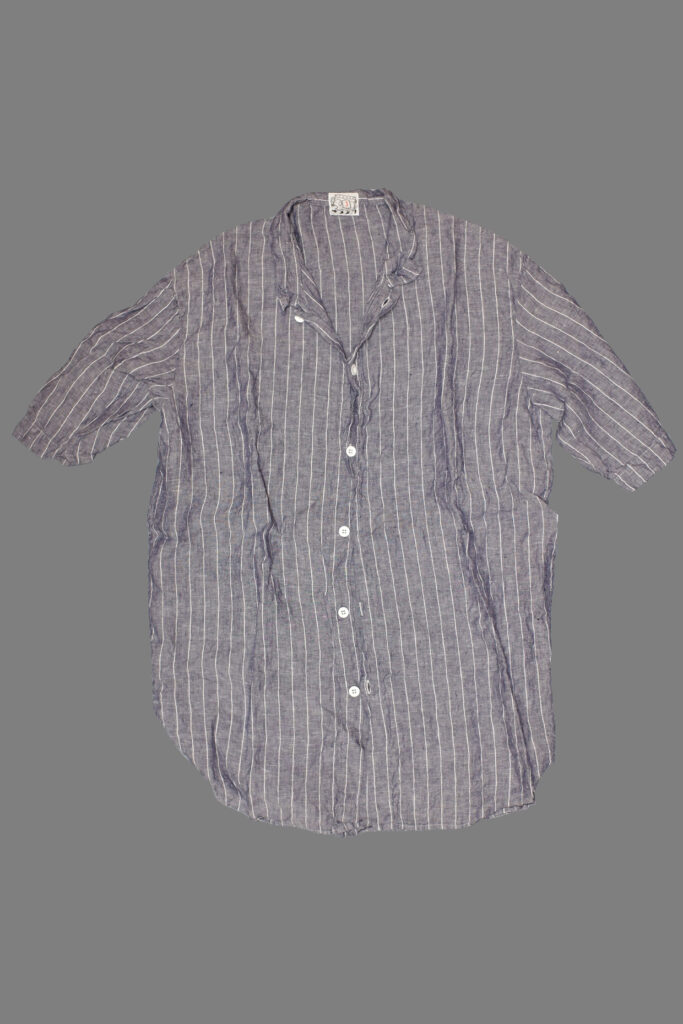 The Weaver’s Stock Short Sleeved Tail Shirt is a simplified version of the type 428 Short Sleeved Tail Shirt, cut with curved front and back tails, and straight hemmed sleeves. The shirt is single-needle sewn with french seams, and the plackets are double-folded for structure without the need for fused interfacings.