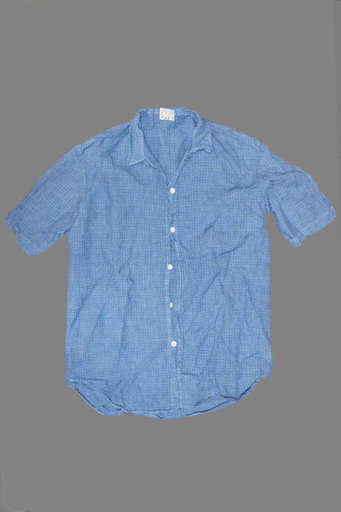 The Weaver’s Stock Short Sleeved Tail Shirt is a simplified version of the type 428 Short Sleeved Tail Shirt, cut with curved front and back tails, and straight hemmed sleeves. The shirt is single-needle sewn with french seams, and the plackets are double-folded for structure without the need for fused interfacings.