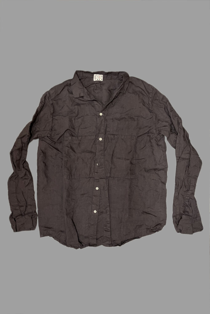 The Weaver’s Stock Butterfly Shirt is a tailored adaptation of the mainline Type 430 Butterfly Shirt, and is single-needle sewn with french seams. There are no side or back seams, the sleeves are inverted, and two chest pockets are tucked into reversed plackets. The cuff plackets are traditionally constructed with a full tailored cuff, a first for Tender, making this style more redolent of fine tailored shirts than other, more workwear-structured, styles. The smaller cream catseye buttons are deadstock melamine.