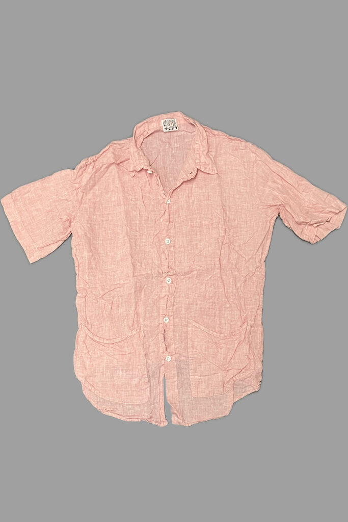The Weaver’s Stock Short Sleeved High Back Shirt is a simplified version of the type 450 High Back Shirt, cut with longer front tails swooping up to a slightly raised back panel, keeping the seat free of unnecessary fabric, and large pockets which follow the curve of the hem. The shirt is single-needle sewn with french seams, and the plackets are double-folded for structure without the need for fused interfacings.