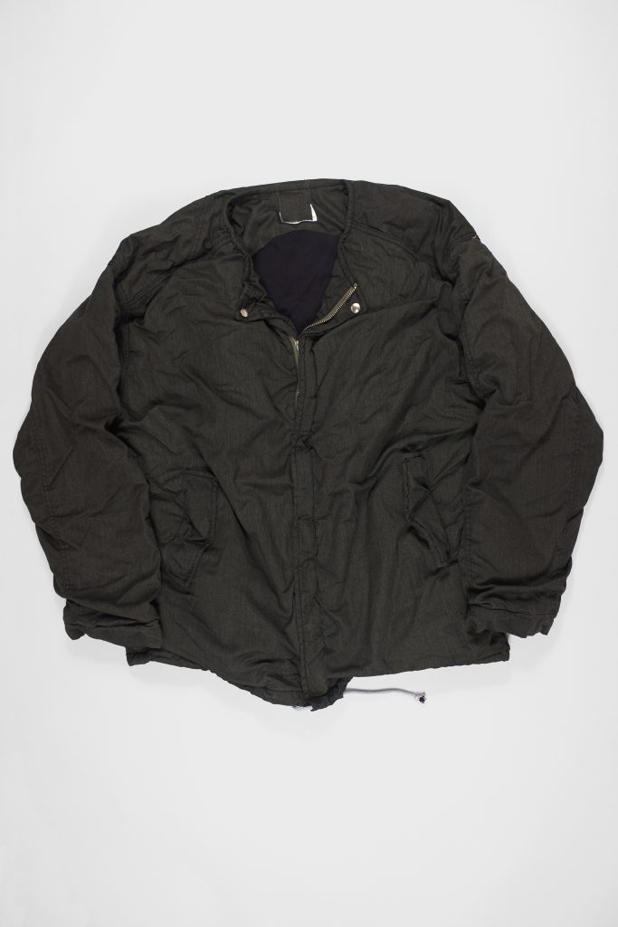 “Drone” is an update of the idea of a bomber jacket, also recalling bagpipes and John Cale and Lemonte Young’s experiments with continuous drones in musical composition.
