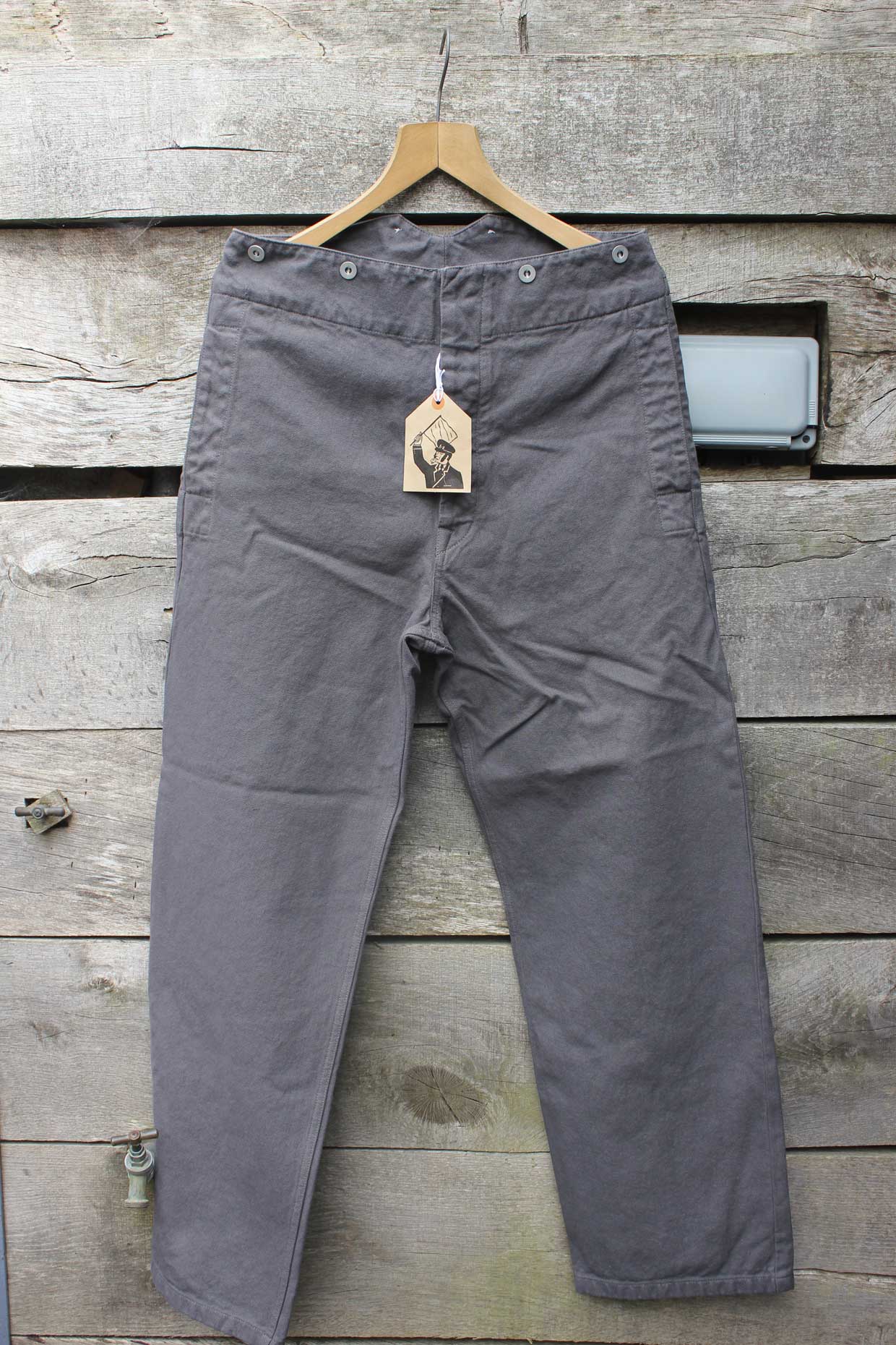 • METAL ROUNDEL BUTTONS AT FLY AND BRACE TOPS