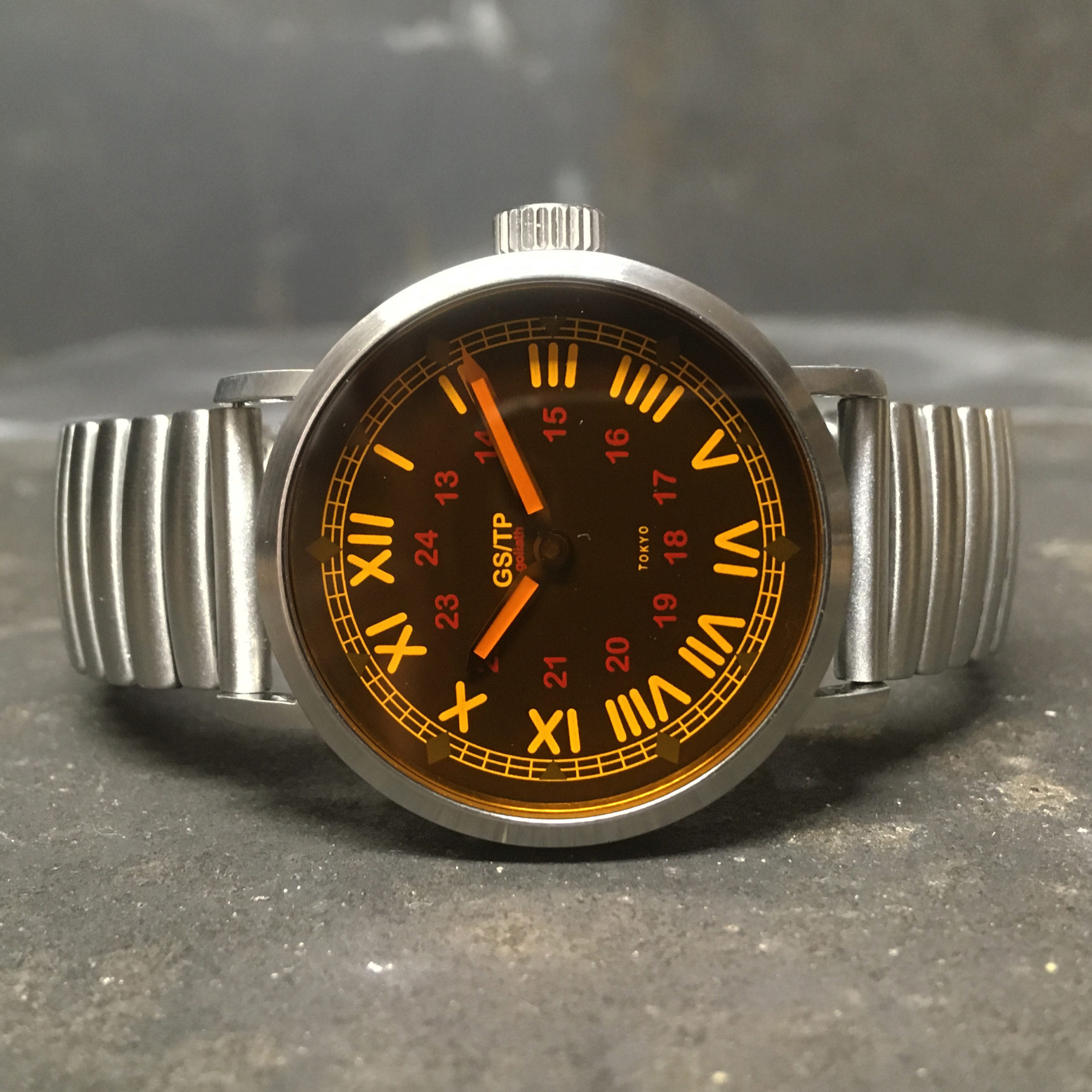 GS/TP’s Goliath Journey dial is an interpretation of the large station clocks on the British railways. The double rail minutes track with large triangle and diamond shaped 5-minutes markers, and odd-hour numerals allow for quick and precise timekeeping at a glance across a crowded platform.