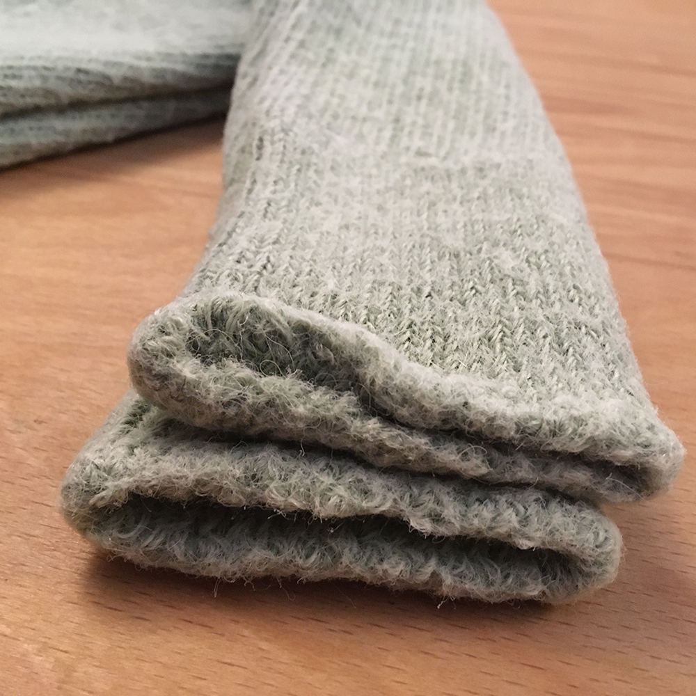 These socks are made with a loop-back, or terry, double knit sole. This makes them especially comfortable, and appropriate to wear with lighter shoes or even heavy boots.