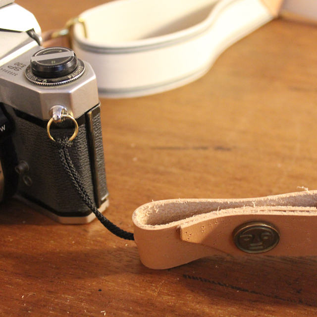 Hand sewn by Morten with waxed linen thread, the tab sections are hand cut from Swedish vegetable-tanned leather, separated with a length of cotton bound elastic, woven in England. The tabs are fastened with Tender’s jeans buttons, lost wax-cast from solid brass in England, and attach to any camera with strap fittings via brass plated steel split rings. The strap can be fully adjusted with solid cast brass separators, and the elastic allows it to stretch slightly for comfort, while still being firm enough to support a camera.