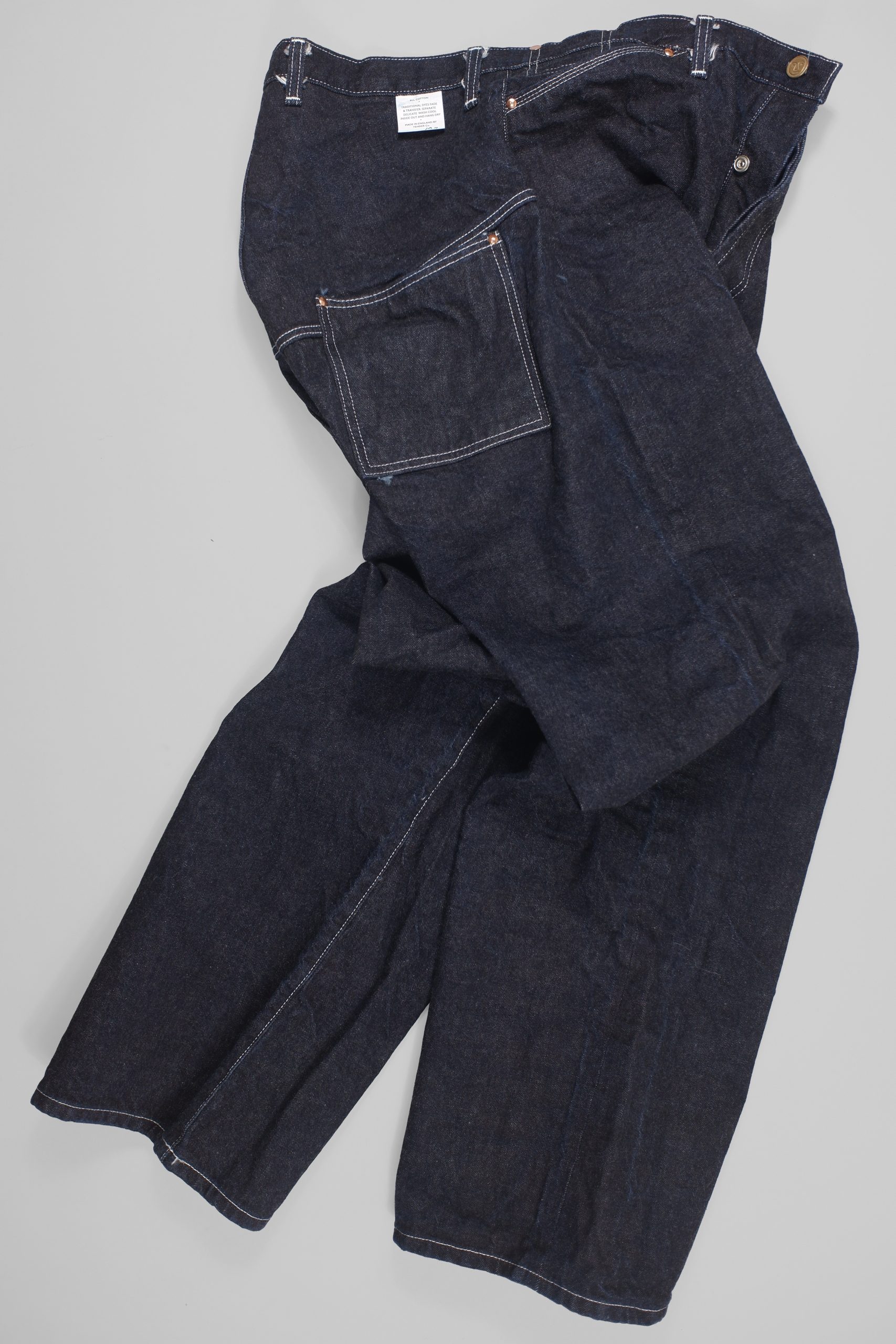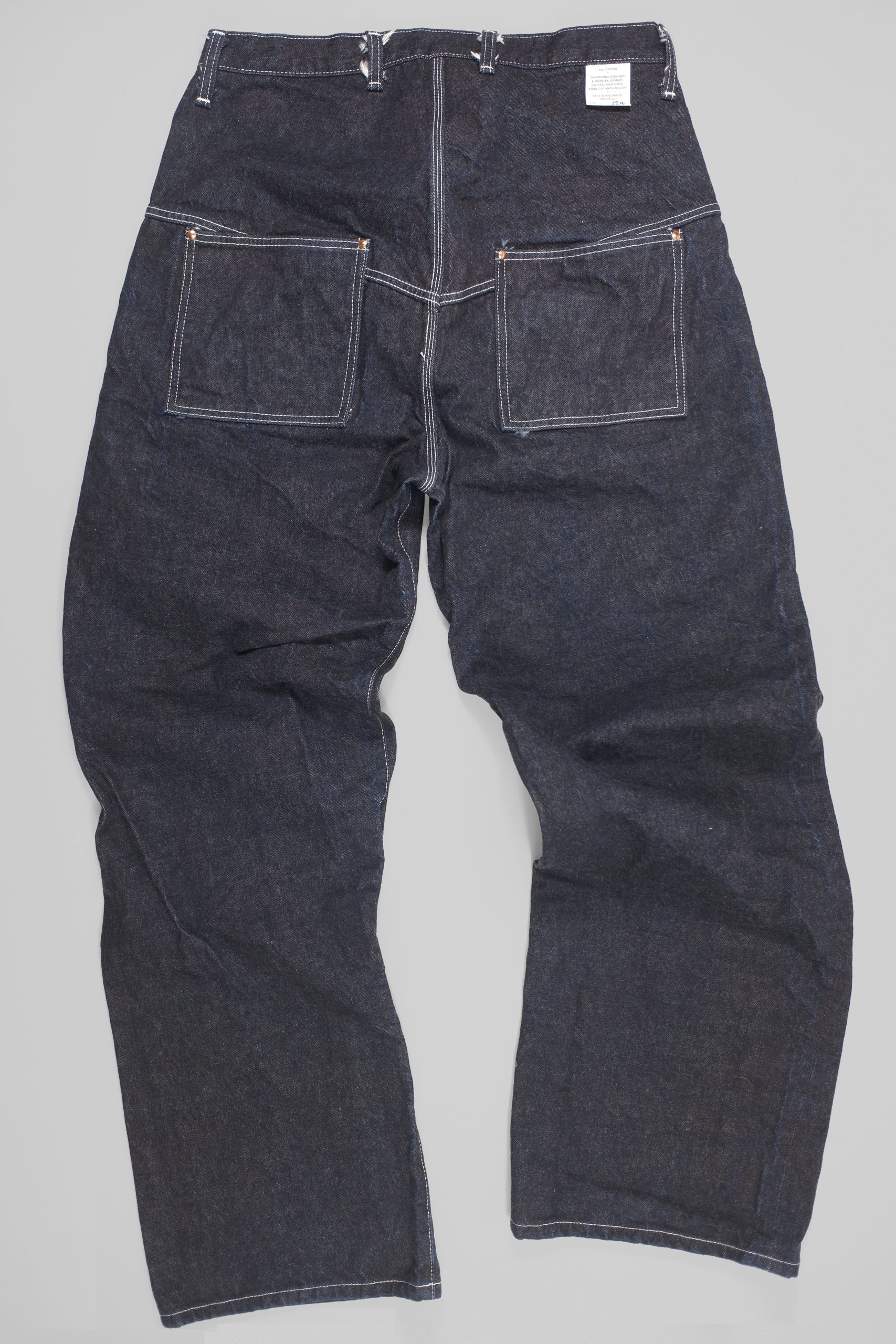 Adapted from type 156 Split Back jeans, Wader jeans have a very high waist, a generous seat, and an easy, wide leg. While they can be worn high up above the waist with a belt, Waders also wear very comfortably dropped down to the natural waist, with a low crotch.