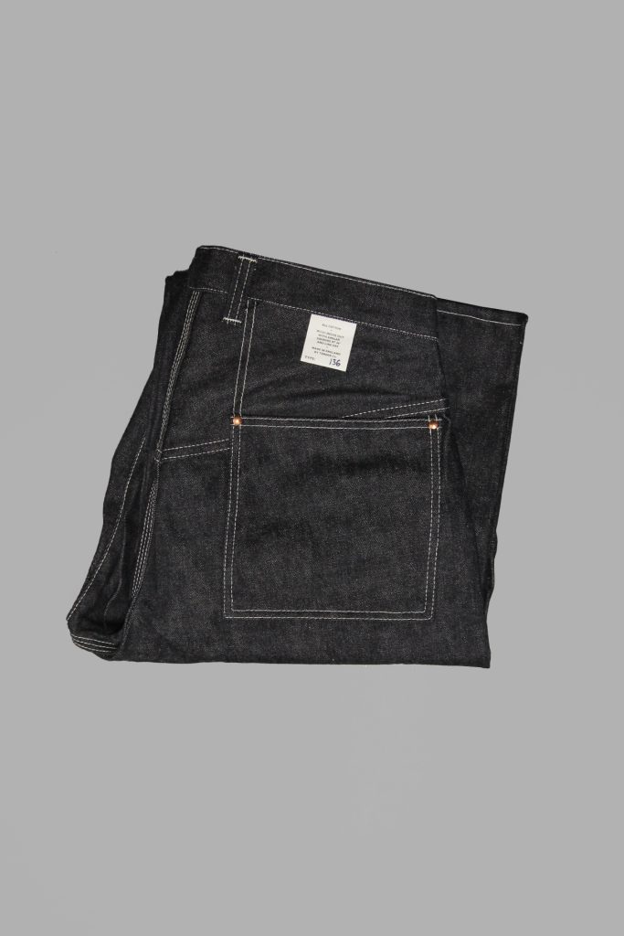 High waist extra wide jeans with a generous seat and thigh, and a very roomy straight leg. This cut is inspired by the ‘Bags’ worn at Oxford University in the early 20th Century.