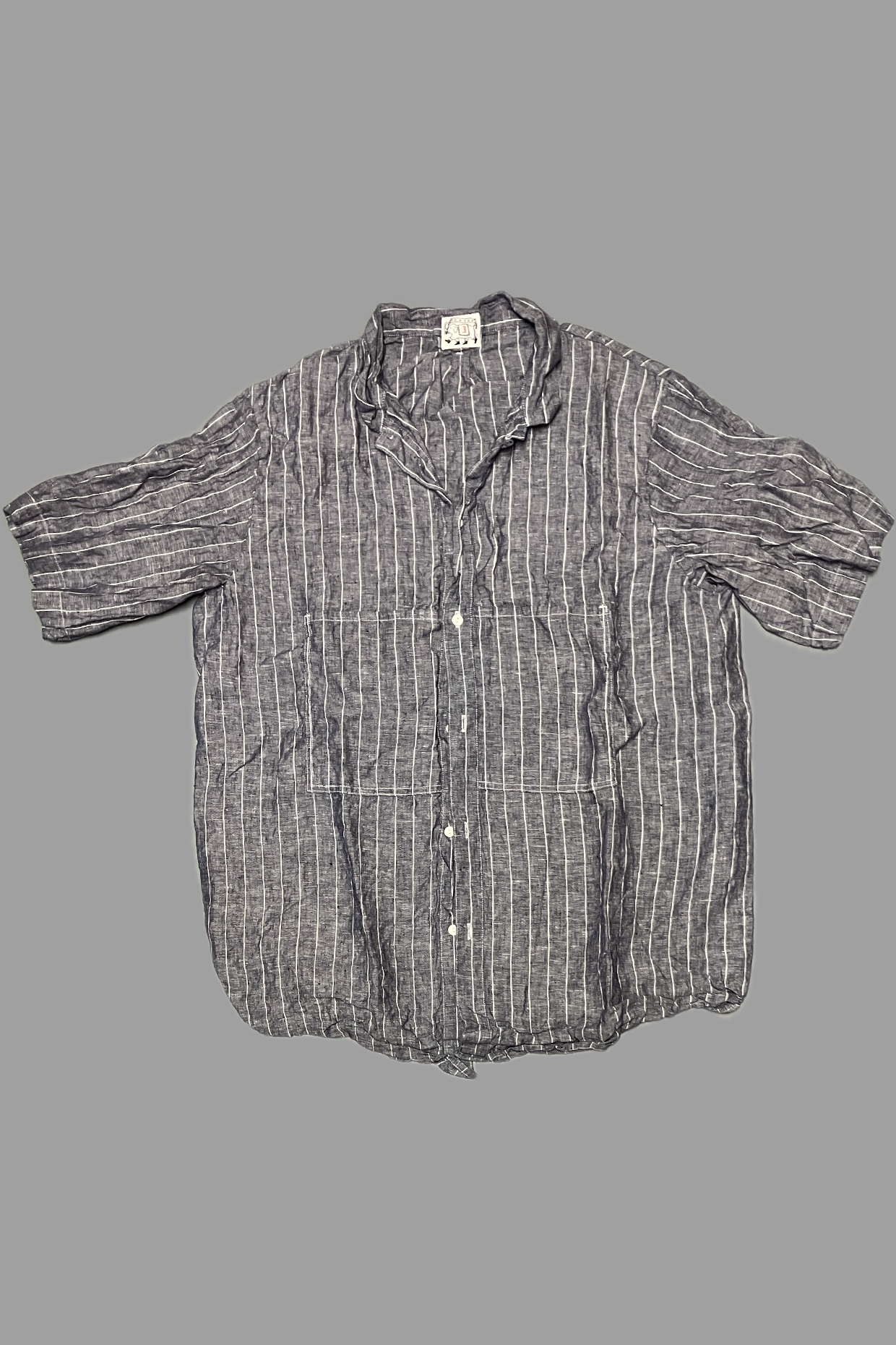 The Weaver’s Stock Short Sleeve Butterfly Shirt is a tailored adaptation of the mainline Type 430 Butterfly Shirt, and is single-needle sewn with french seams. There are no side or back seams, the sleeves are inverted, and two chest pockets are tucked into reversed plackets. The smaller cream catseye buttons are deadstock melamine.